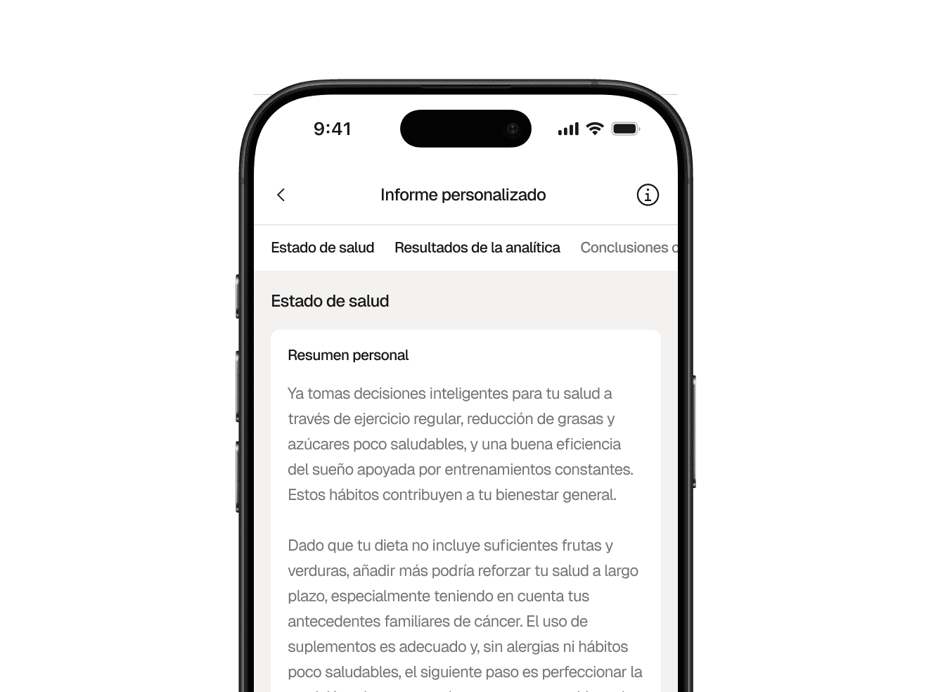En 24 horas directamente en tu aplicación. Cuando estén disponibles todos tus resultados, nuestro equipo médico comenzará a trabajar en tu informe personalizado.