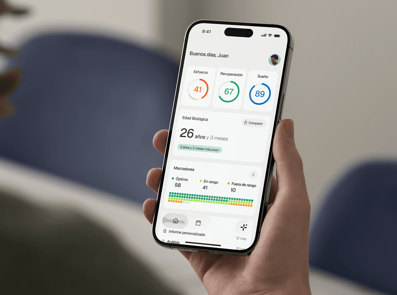 Con dos analíticas al año, seguimiento diario desde tu móvil y tus dispositivos conectados, y el acompañamiento de médicos reales, Holo te ayuda a entender qué pasa dentro de tu cuerpo para que tomes decisiones más inteligentes y saludables